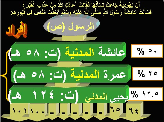 جَاءَتْ يَهُودِيَّةٌ إِلَى عَائِشَةَ تَسْأَلُهَا فَقَالَتْ لِعَائِشَةَ: أَعَاذَكِ اللَّهُ مِنْ عَذَابِ الْقَبْرِ، فَجَاءَ النَّبِيُّ صَلَّى اللهُ عَلَيْهِ وَسَلَّمَ، فَسَأَلَتْهُ عَائِشَةُ، فَقَالَ رَسُولُ اللَّهِ صَلَّى اللهُ عَلَيْهِ وَسَلَّمَ: «عَذَابُ الْقَبْرِ حَقٌّ» قَالَتْ عَائِشَةُ: فَمَا سَمِعْتُهُ بَعْدُ يُصَلِّي صَلَاةً إِلَّا تَعَوَّذَ فِيهَا مِنْ عَذَابِ الْقَبْرِ