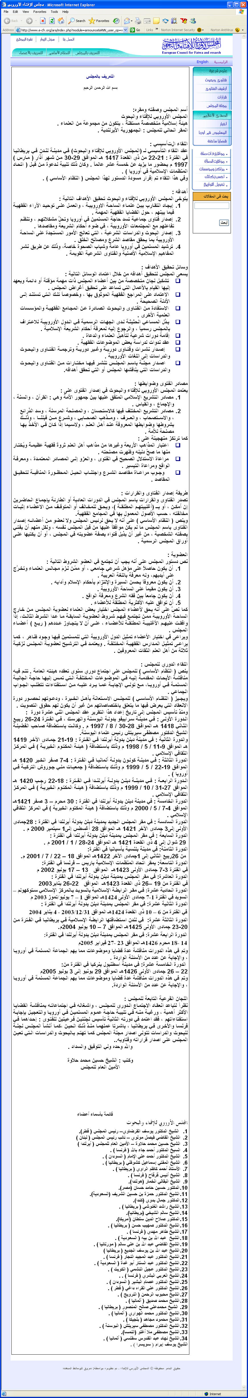 وقد أثبتنا النص هنا لغرض التوثيق: (رابط العرض المصورلصفحة موقع المجلس الأوروبي للإفتاء)