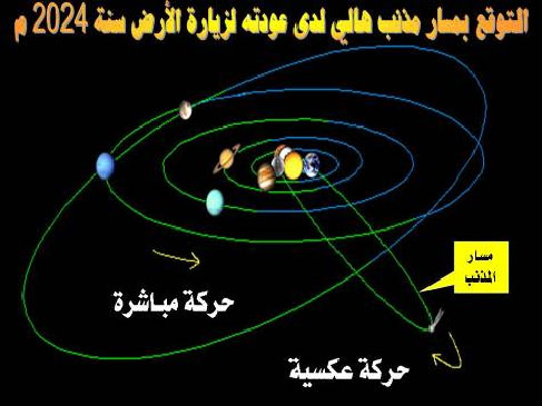 والصورة المقابلة تبين مسار المذنب عندما سيقترب من الأرض مجدداً سنة 2024 م. (اضغط على الصورة لتكبيرها)